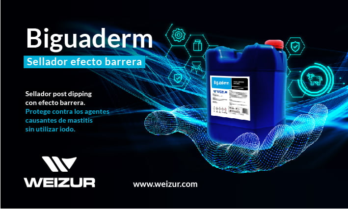 junio 13, 2023Nuevo sellador no iodado Post DippingEfecto Barrera Presentamos Biguaderm, el nuevo sellador no iodado efecto barrera, rico en emolientes que hidratan y suavizan el pezón a la vez que lo protegen. Esta indicado para bovinos, ovinos y caprinos. Es de fácil utilización, y posee gran poder bactericida es un gran aliado para la desinfección y…